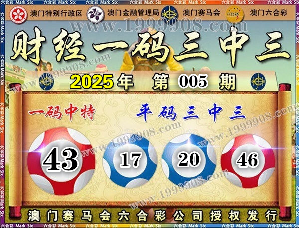 005期开奖结果:46-19-20-36-13-17 特码43