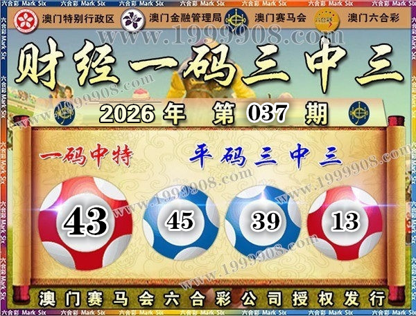 037期开奖结果:34-42-39-13-44-45 特码43