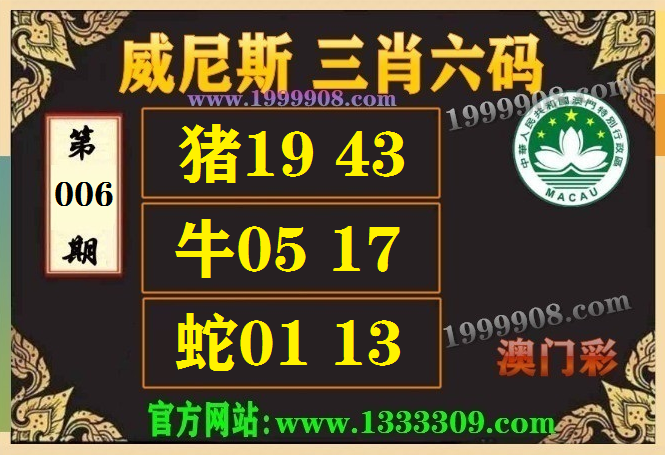 006期:(威尼斯三肖六码【猪19.43、牛05.17、蛇01.13